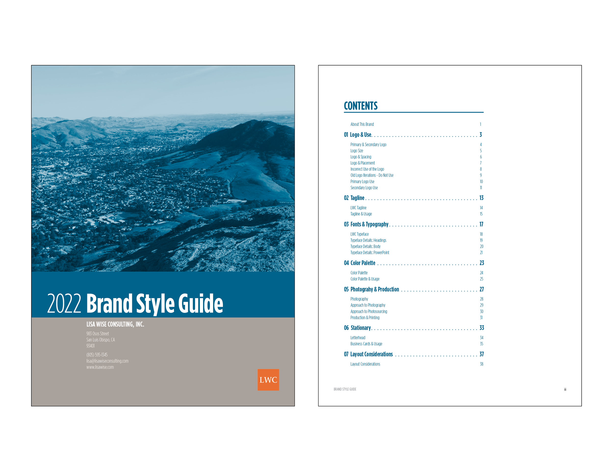 I had the fortunate opportunity to intern for Lisa Wise Consulting this past summer and fall. In addition to working on various planning and zoning projects for several large municipalities across the country, they trusted me with redesigning their brand style guide. Here are a few select pages that give the impression of the overall design.